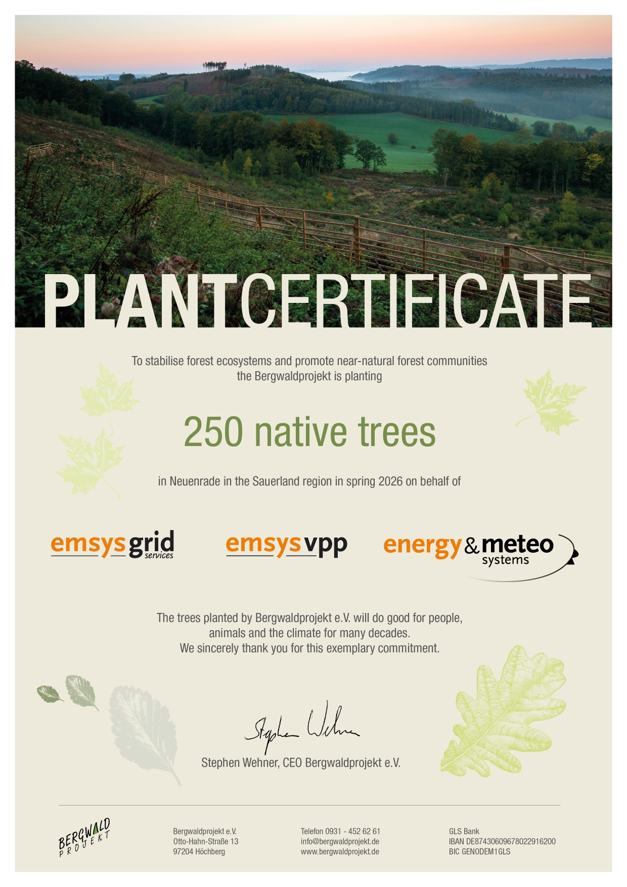 Anstelle einer Weihnachtskarte unterstützen wir erneut die wertvolle Arbeit des Bergwaldprojekt e.V. und lassen für jede:n Mitarbeiter:in einen Baum, also 250 Bäume insgesamt, im vom Waldsterben geprägten Sauerland pflanzen. Die Pflanzaktion verfolgt das Ziel, auf durch die Klimakrise entstandenen Kahlflächen wieder naturnahe Wälder entstehen zu lassen.